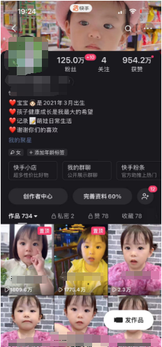 首页    快手号    可爱萌娃 125万+粉丝 男粉占比59%以上 中老年用户群体为主 粉丝粘性好 未实名 无违规 欢迎咨询