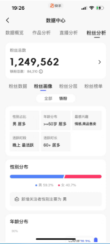 • 粉丝偏向:男粉偏多(男粉占比59.3%)